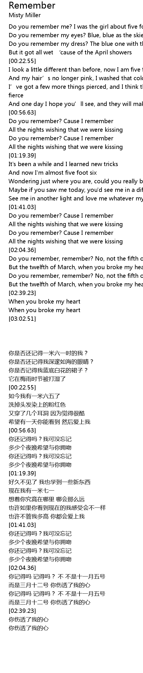 | [02:34.16] | But the twelfth of March, when you broke my heart |