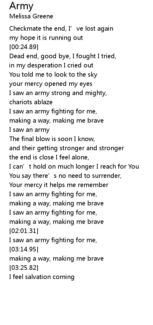 | [00:44.84] | I saw an army strong and mighty, |