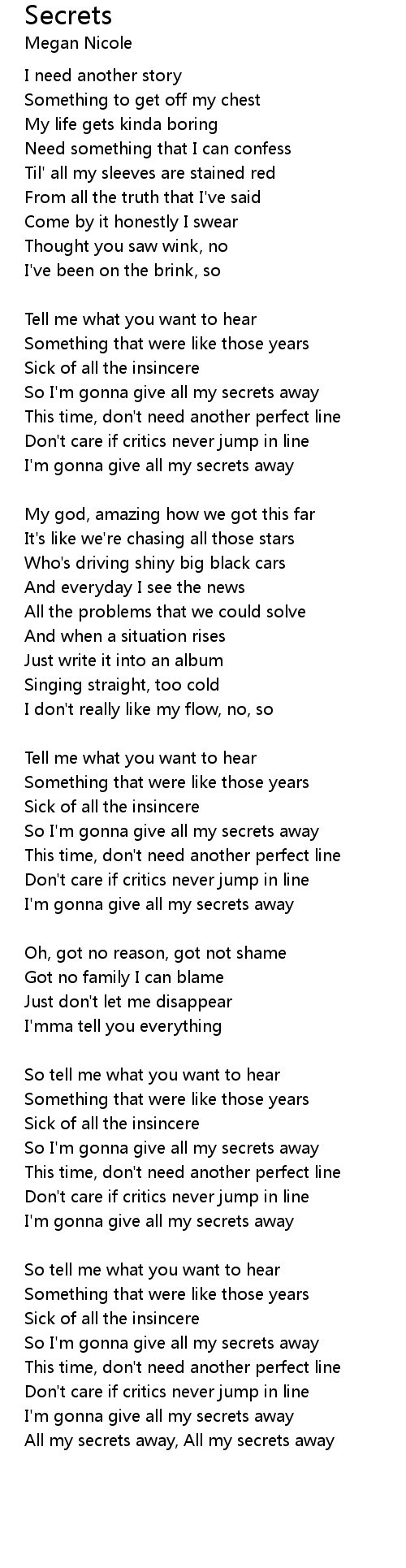 All my secrets away, All my secrets away |