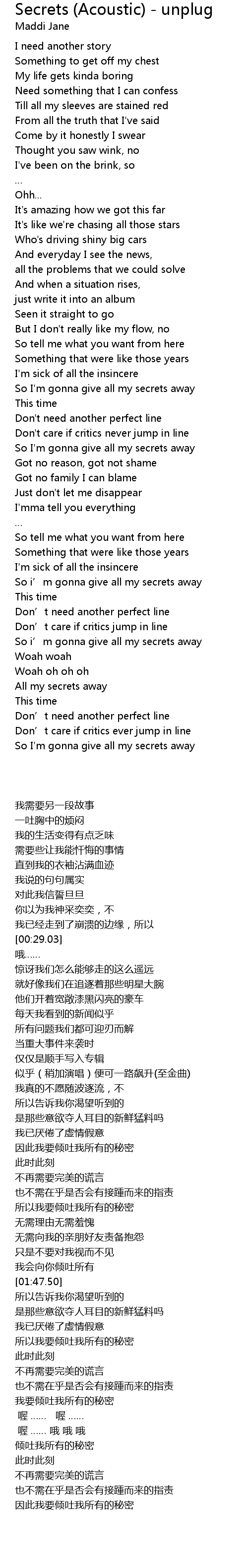 | [01:29.87] | 所以我要倾吐我所有的秘密 |