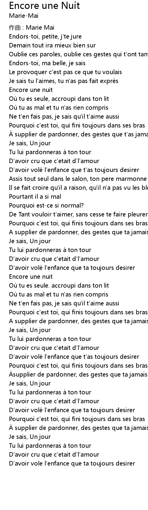 | 歌曲 | Encore une Nuit |