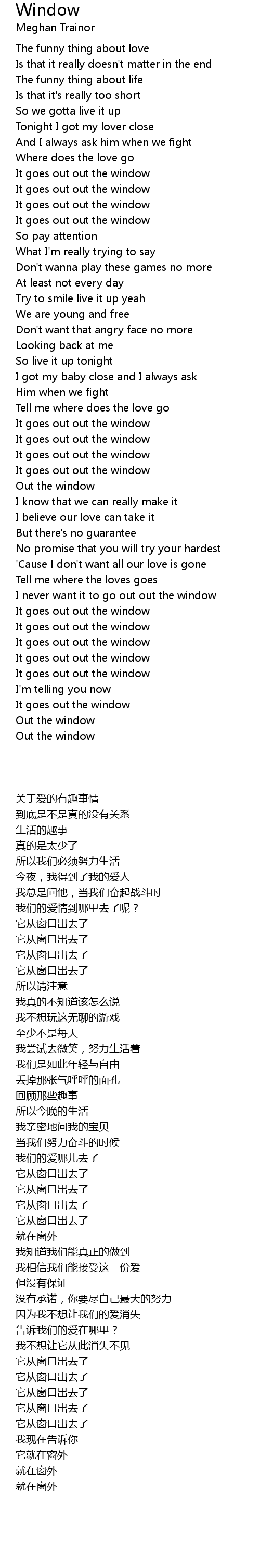 I never want it to go out out the window |