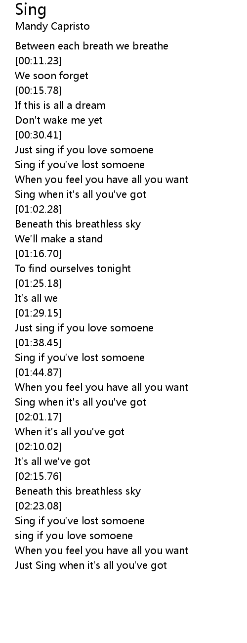 | [00:53.35] | Sing when it s all you ve got |