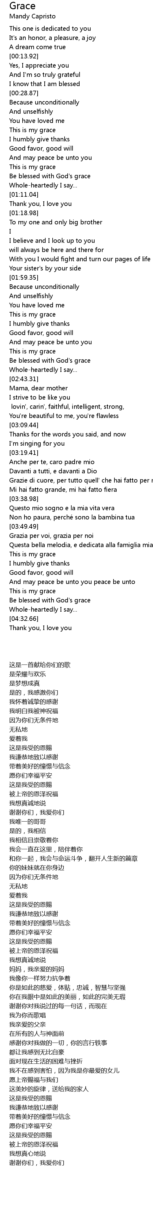 | [02:33.68] | Be blessed with God's grace |