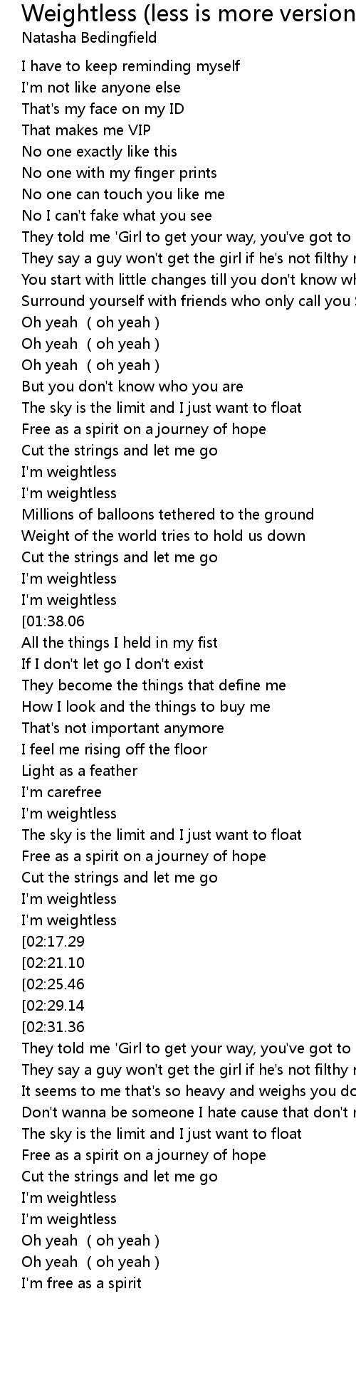| [01:58.77] | I' m weightless |
