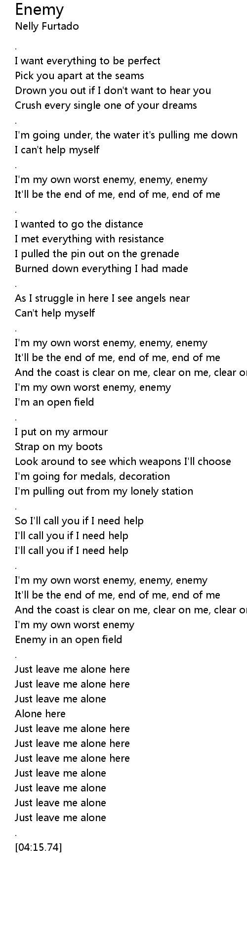 I'm my own worst enemy, enemy |