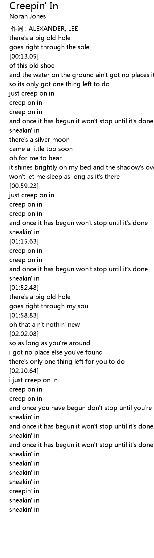 | [00:59.98] | just creep on in |