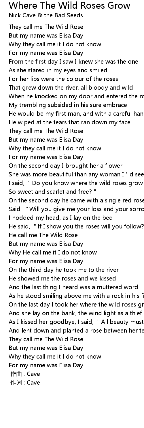| [01:45] | I said, "Do you know where the wild roses grow |