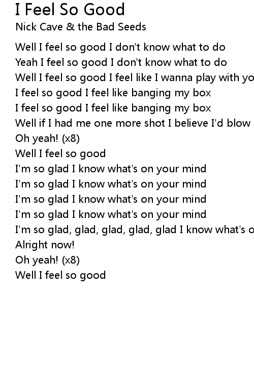 Well I feel so good |
