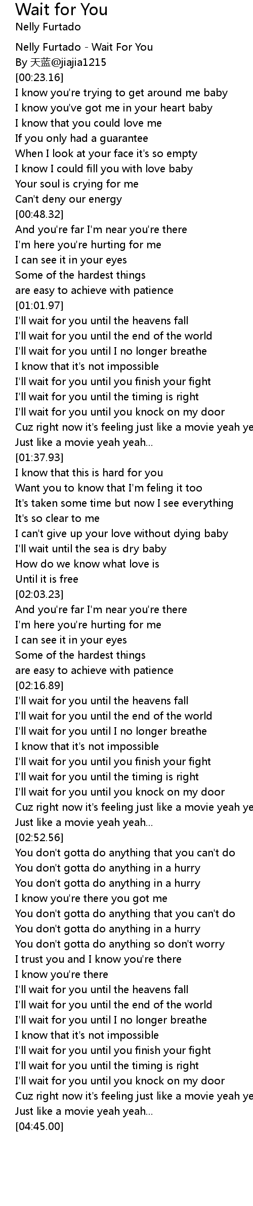 | [02:32.66] | I'll wait for you until the timing is right |