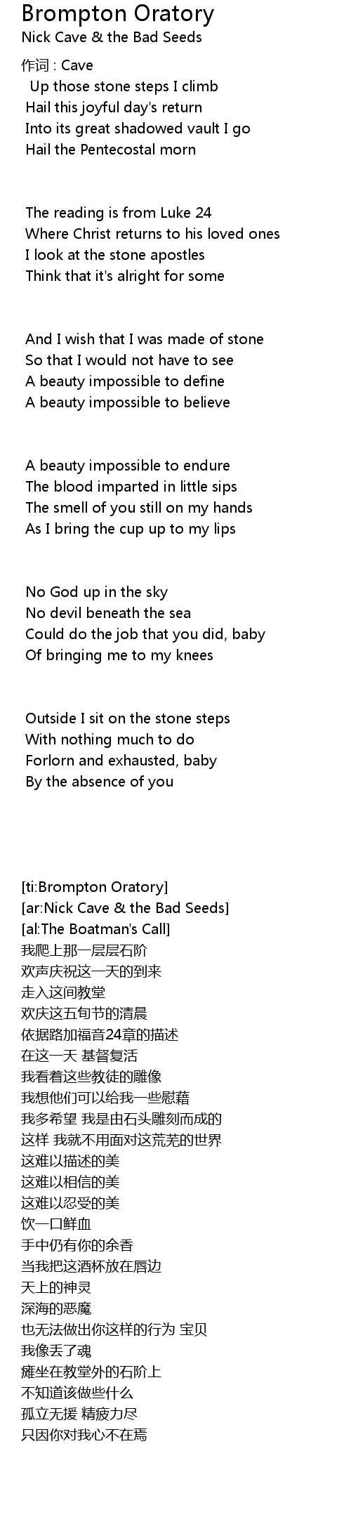 | [03:06.90] | 瘫坐在教堂外的石阶上 |