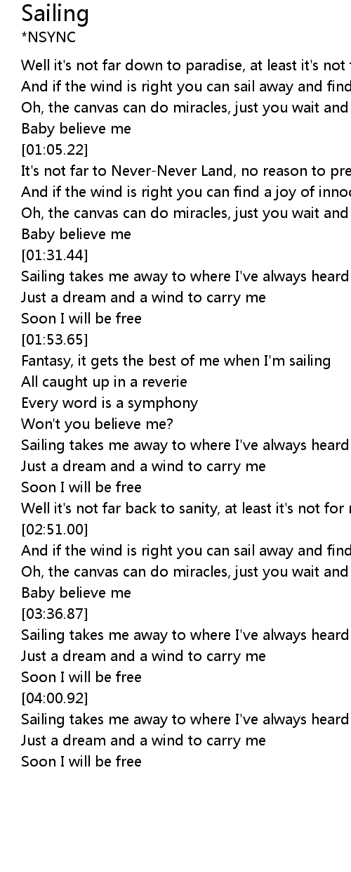 | [01:33.62] | Sailing takes me away to where I've always heard it could be |