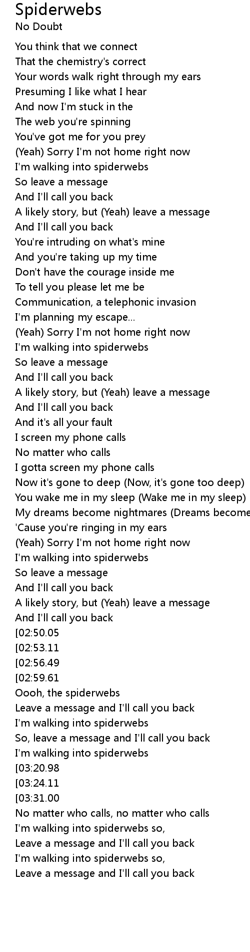 | [03:53.63] | I'm walking into spiderwebs so, |