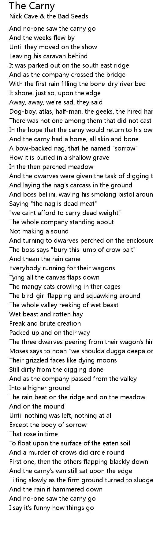 And no-one saw the carny go |