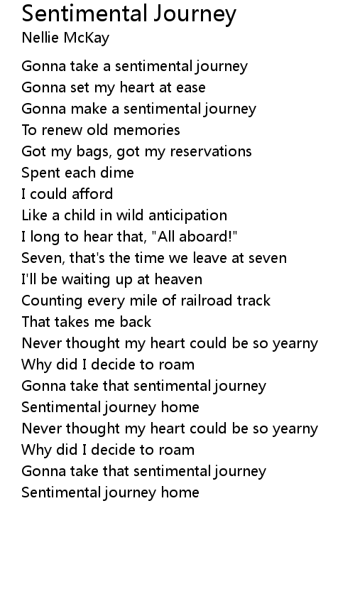 Gonna take that sentimental journey