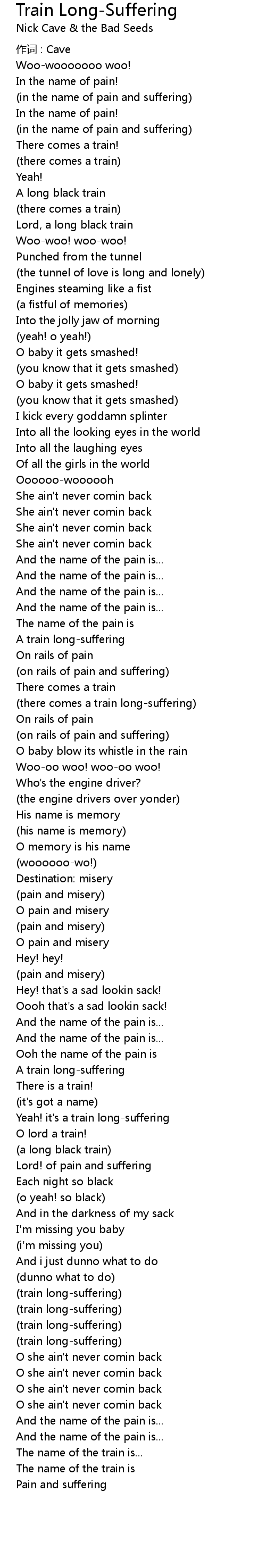 | 歌曲 | Train Long-Suffering |