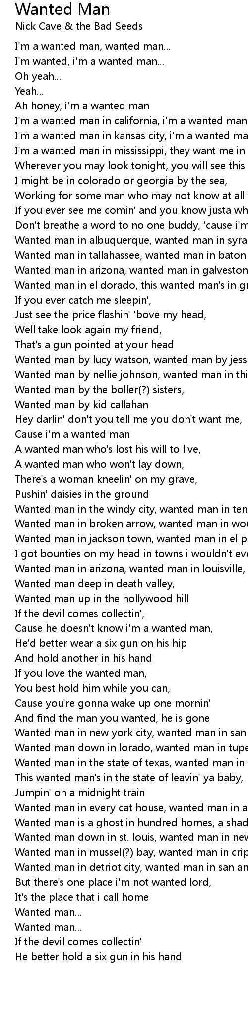 I'm a wanted man in kansas city, i'm a wanted man in ohio |