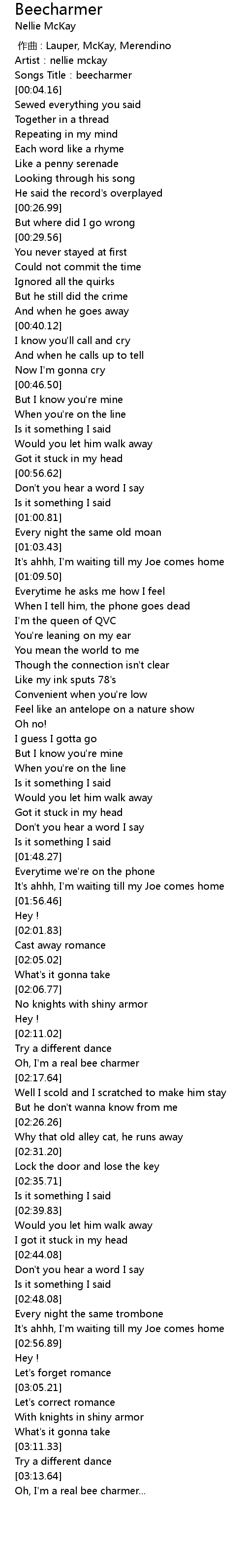 | [00:02.14] | Songs Title: beecharmer |