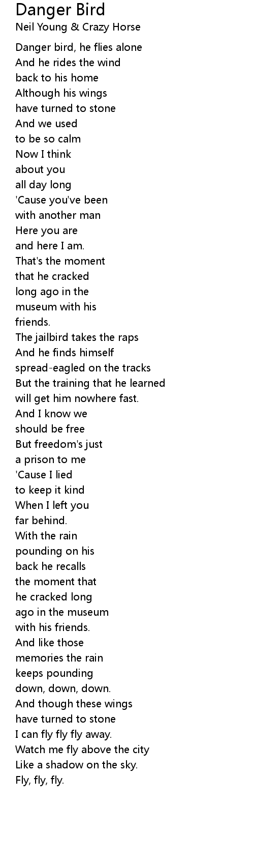 Danger bird, he flies alone |