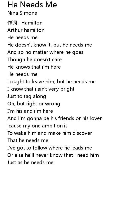 | 歌曲 | He Needs Me |
