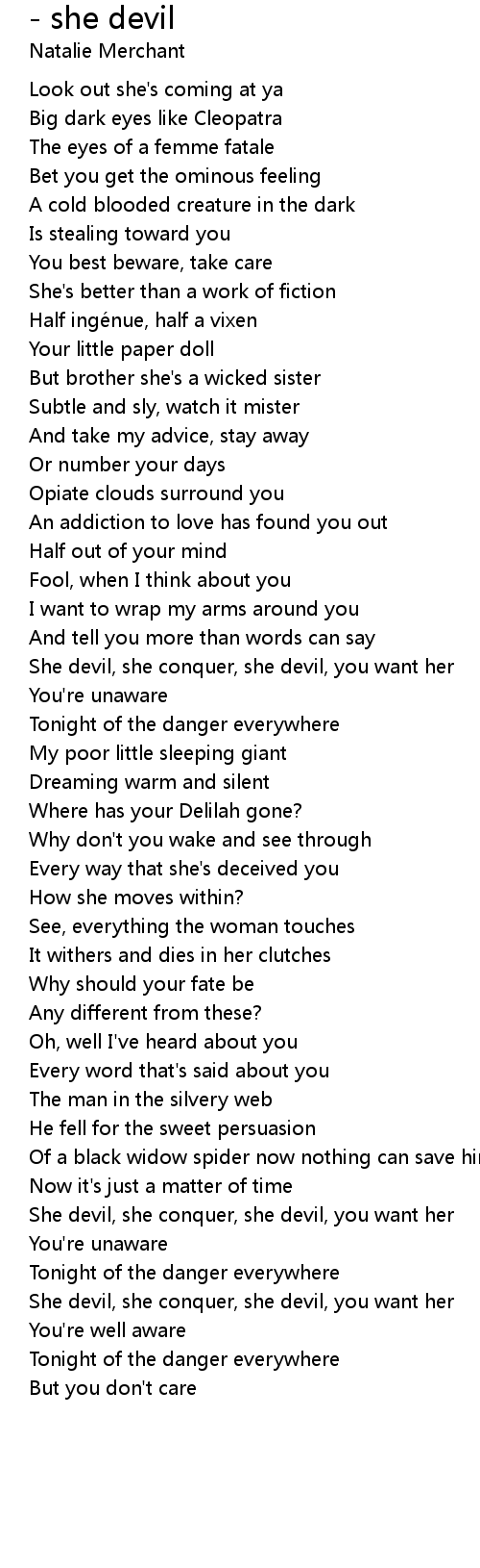 | She devil, she conquer, she devil, you want her | |