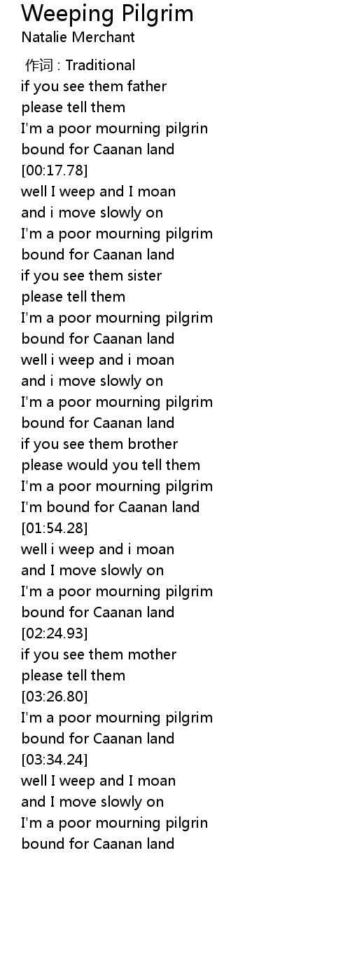 | [00:36.72] | I' m a poor mourning pilgrim |