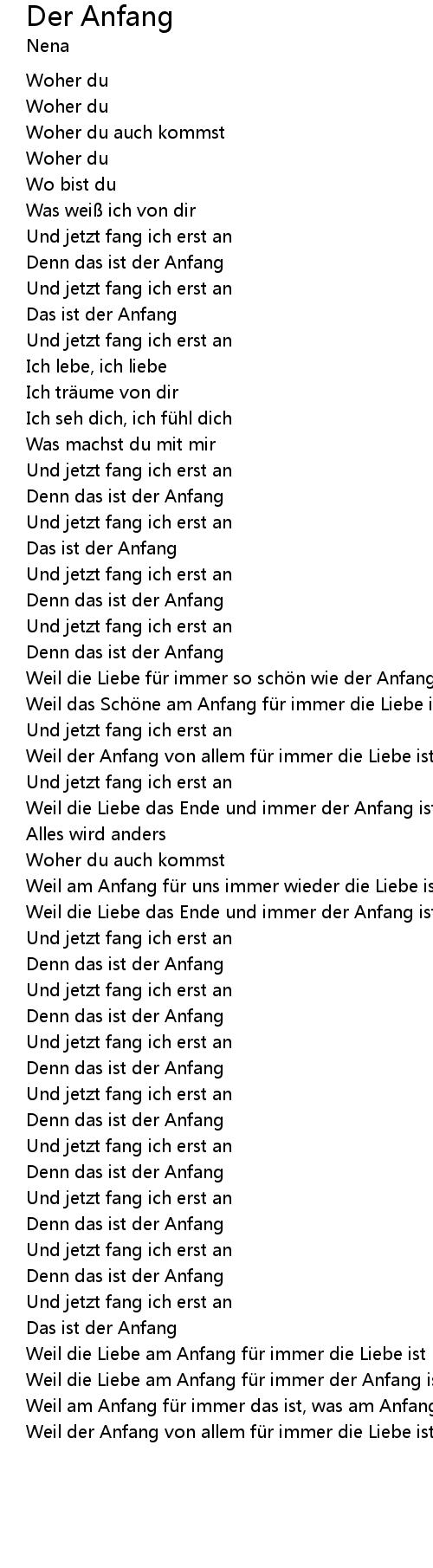 | Weil am Anfang fü r immer das ist, was am Anfang ist | |