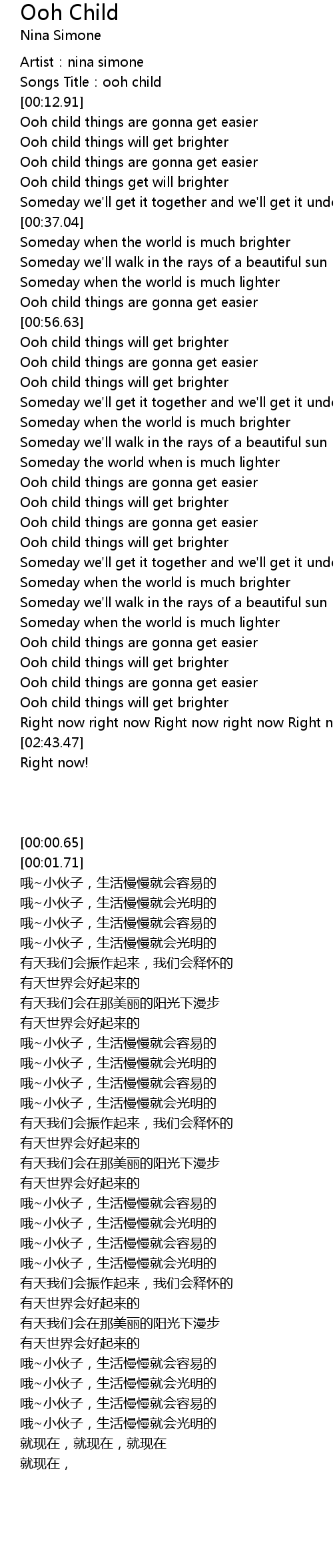 | [00:01.71] | Songs Title: ooh child |