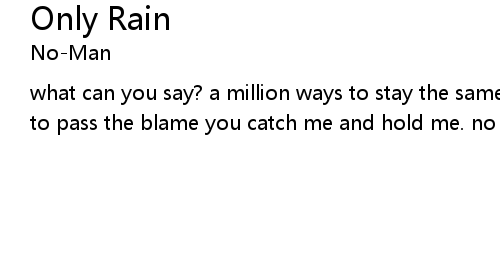 what can you say? a million ways to stay the same. day after day, a million ways to pass the blame you catch me and hold me. no more fountains, only rain.