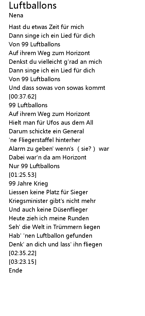 | [01:19.52] | Nur 99 Luftballons |