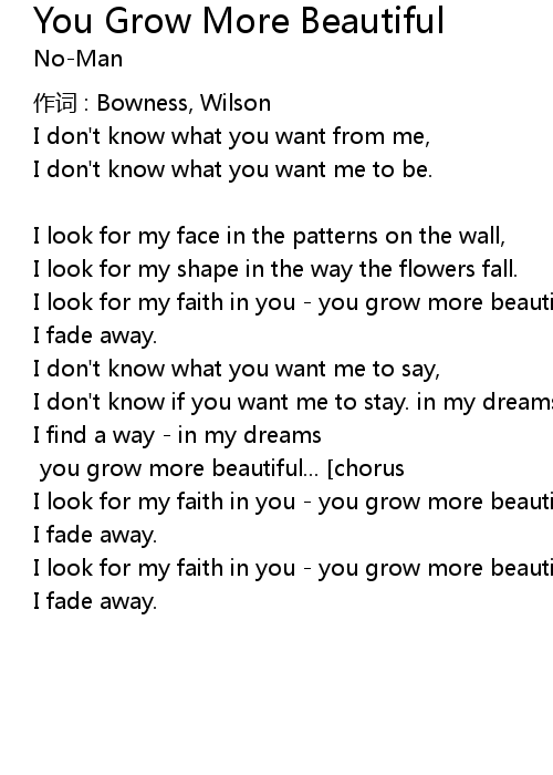 | I seize the day. chorus you grow more beautiful... chorus | |