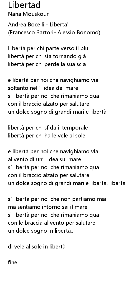| e liberta per noi che navighiamo via | |