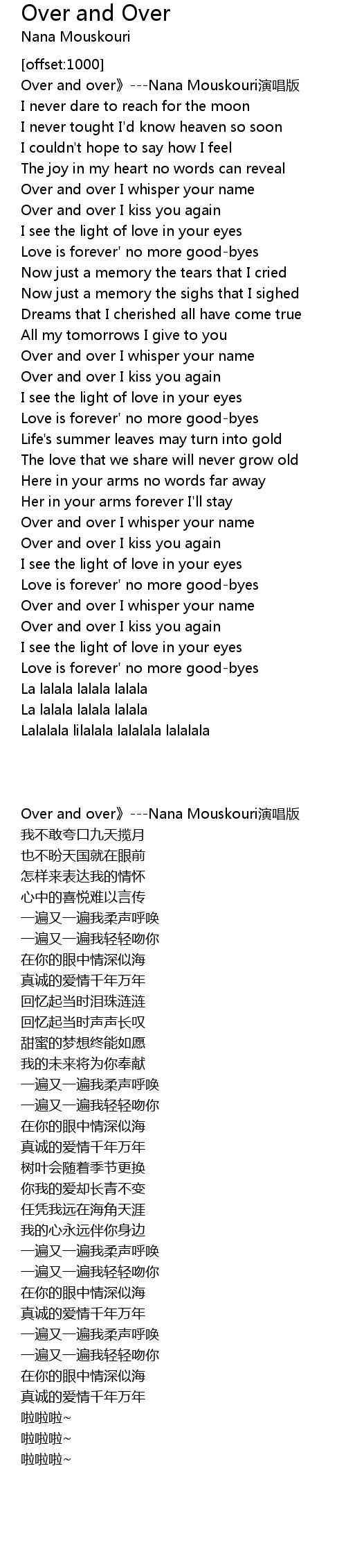 | [00:03.03] | Over and over Nana Mouskouri yǎn chàng bǎn |