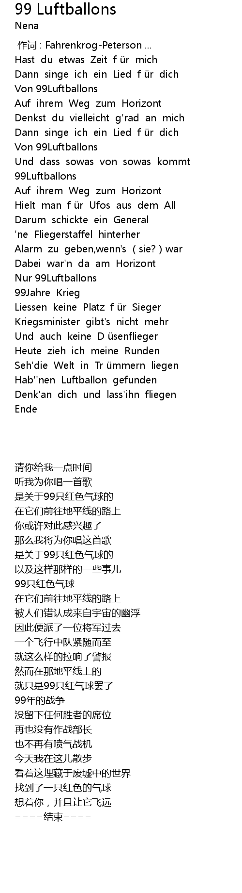 | [00:22.33] | Von 99Luftballons |
