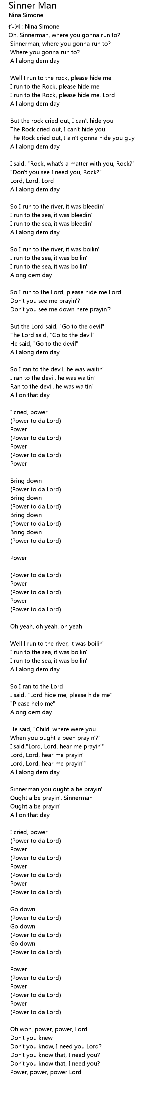 | 歌曲 | Sinner Man |