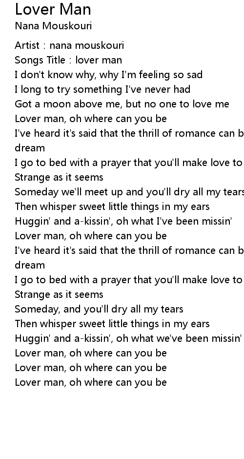 | [04:47.47] | Lover man, oh where can you be |