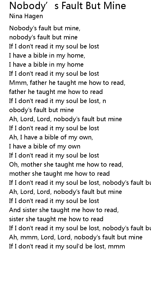 Ah, mmm, Lord, Lord, nobody's fault but mine |
