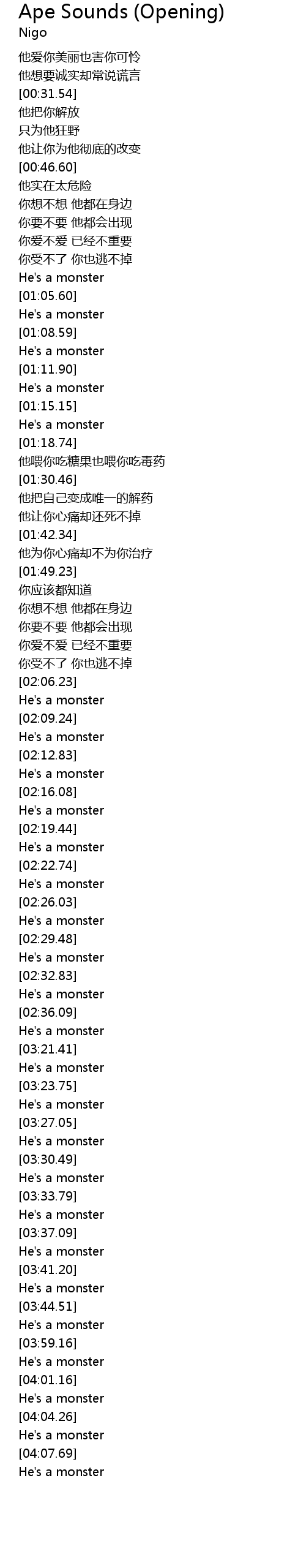 | [00:58.15] | 你受不了 你也逃不掉 |