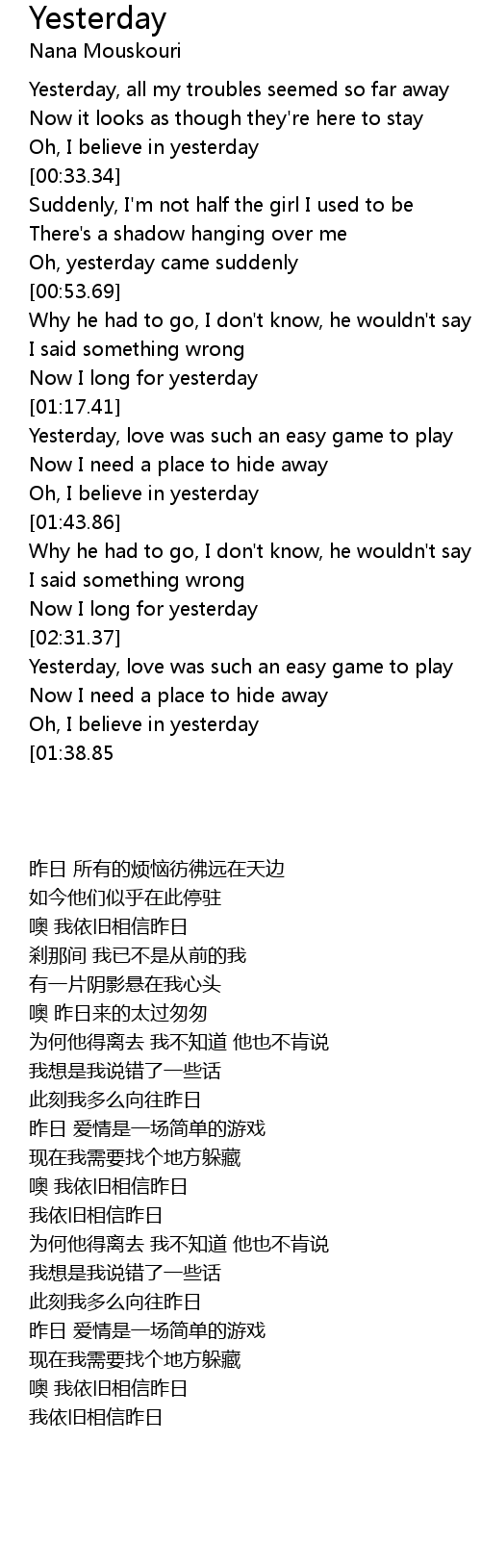 I believe in yesterday |