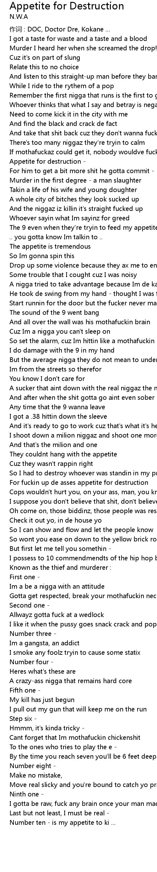 | The 9 even when they' re tryin to feed my appetite for destruction | |