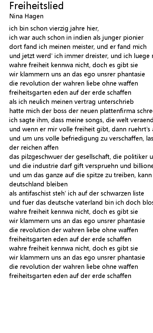 und wenn er mir volle freiheit gibt, dann ruehrt's auf allen sendern |