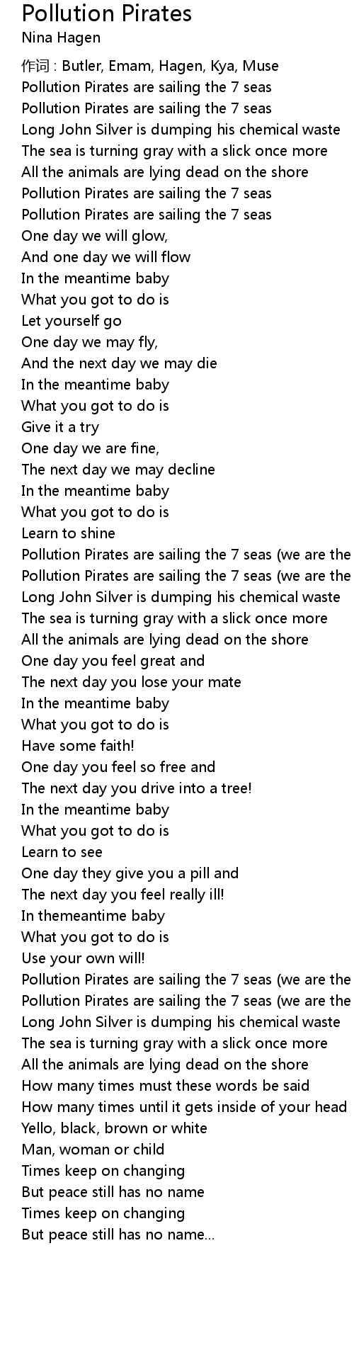 | 歌曲 | Pollution Pirates |