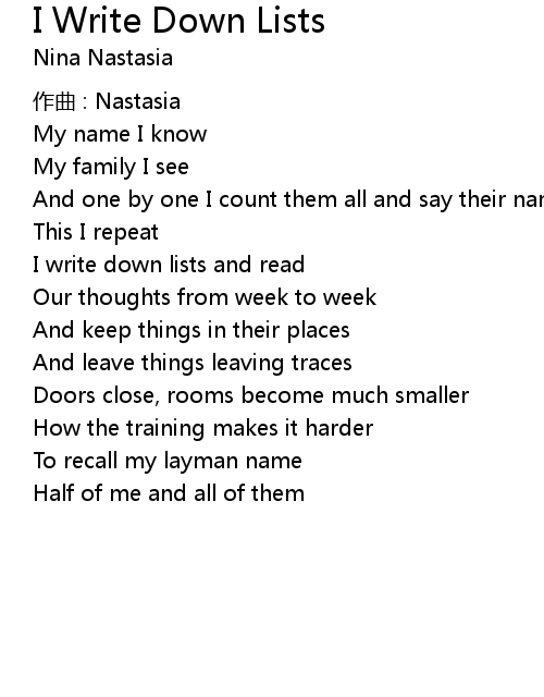 | 歌曲 | I Write Down Lists |