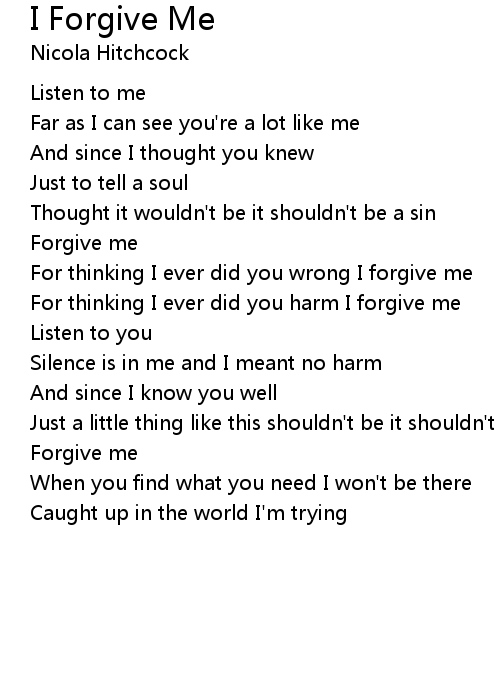 | For thinking I ever did you wrong I forgive me | |