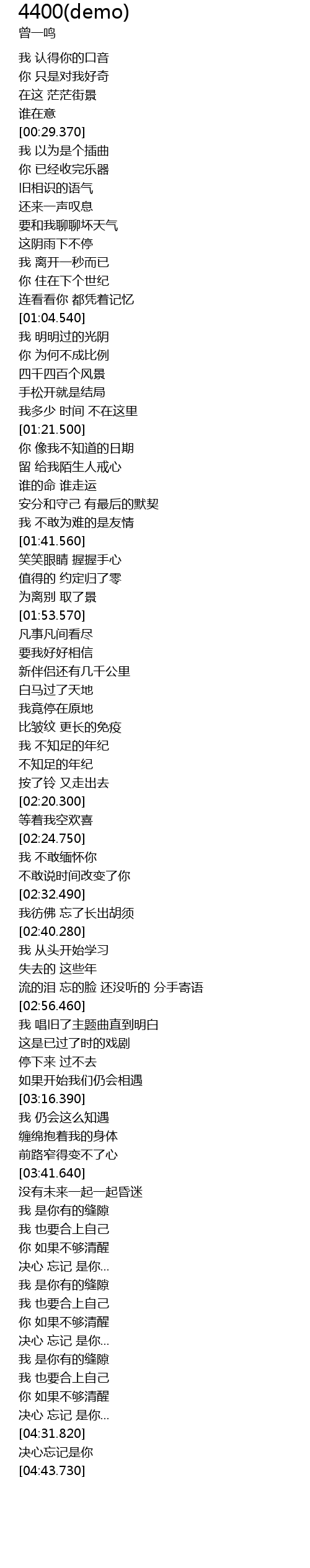 | [04:12.690] | 决心 忘记 是你... |
