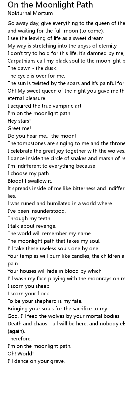 Carpathians call my black soul to the moonlight path.