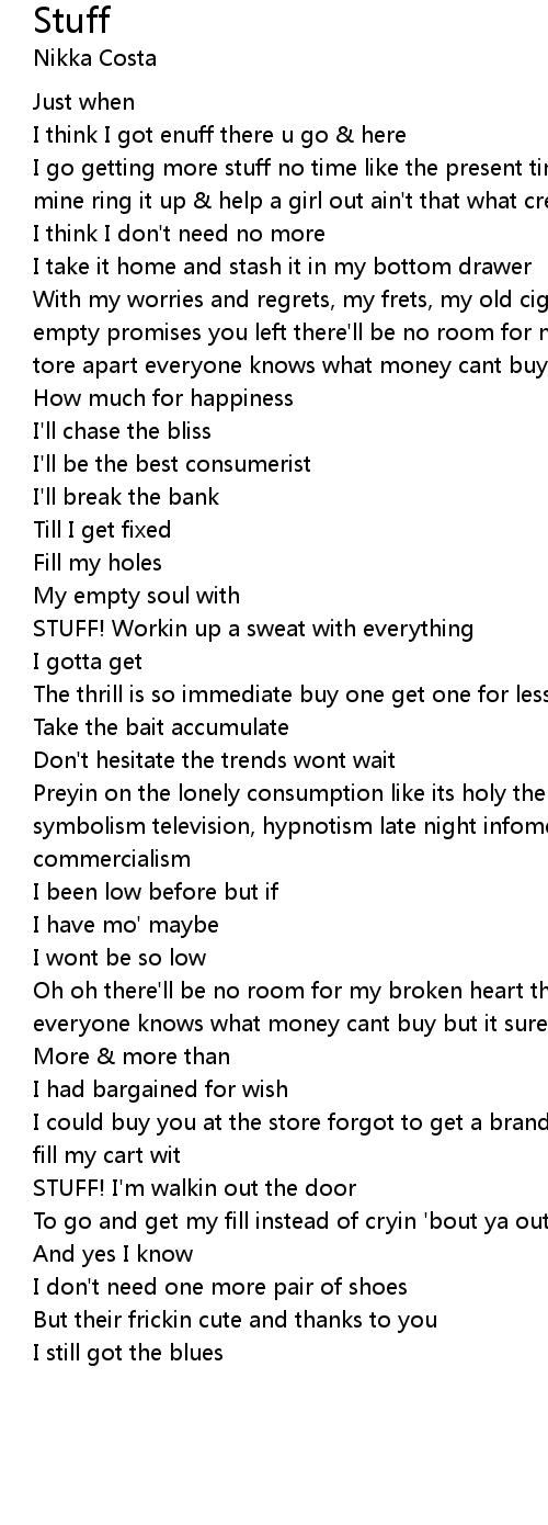 I go getting more stuff no time like the present time to put it in this bag of mine ring it up & help a girl out ain't that what credits all about just when |