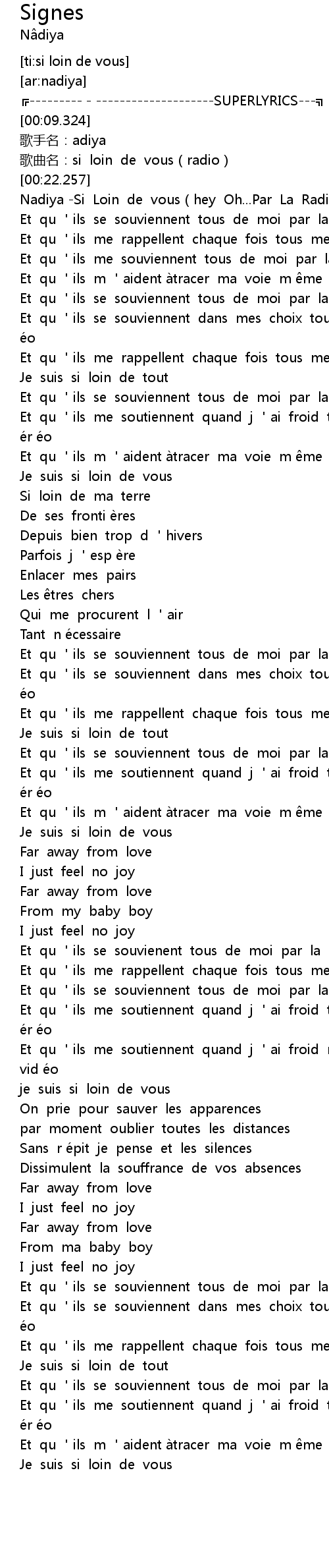 | [00:24.145] | Nadiya -Si Loin de vous(hey Oh...Par La Radio) |