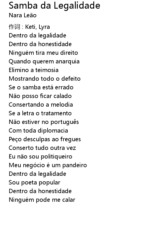 | 歌曲 | Samba da Legalidade |