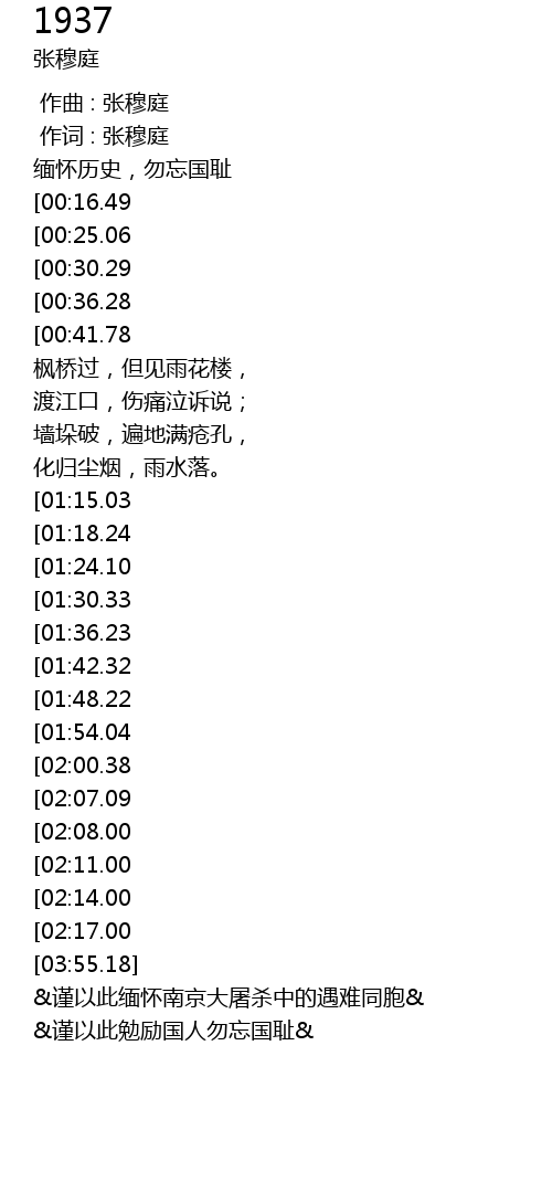 | [03:59.00] | &谨以此缅怀南京大屠杀中的遇难同胞& |